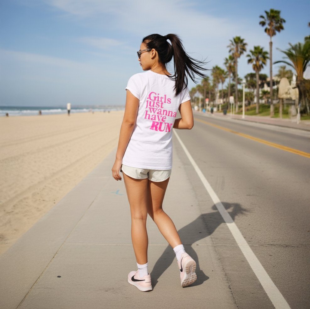 Leicht, weich und einfach zum Wohlfühlen – dieses Girl-Cut Shirt aus 100% Baumwolle bringt Spaß und Style in deinen Laufalltag.